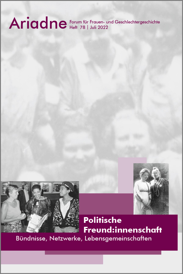 2022 hatte die Ariadne 78 „Politische Freund:innenschaft“ zum Thema. Die Beiträge erzählen verschiedene Frauenfreundschaften im Verlaufe von knapp 100 Jahren. Die in diesem Band versammelten Geschichten handeln von feministischer oder frauenpolitischer Bewegungspolitik, von Bündnis- und Netzwerkpraxis in Hinblick auf Beruf, Karriere und gesellschaftliche Position sowie von intimer Lebenspraxis. Im Weiteren wird das französische „Centre des Archives du Féminisme“ vorgestellt. In den Rezensionen werden aktuelle Bücher zu Themen der Frauenbewegung u.a. besprochen.