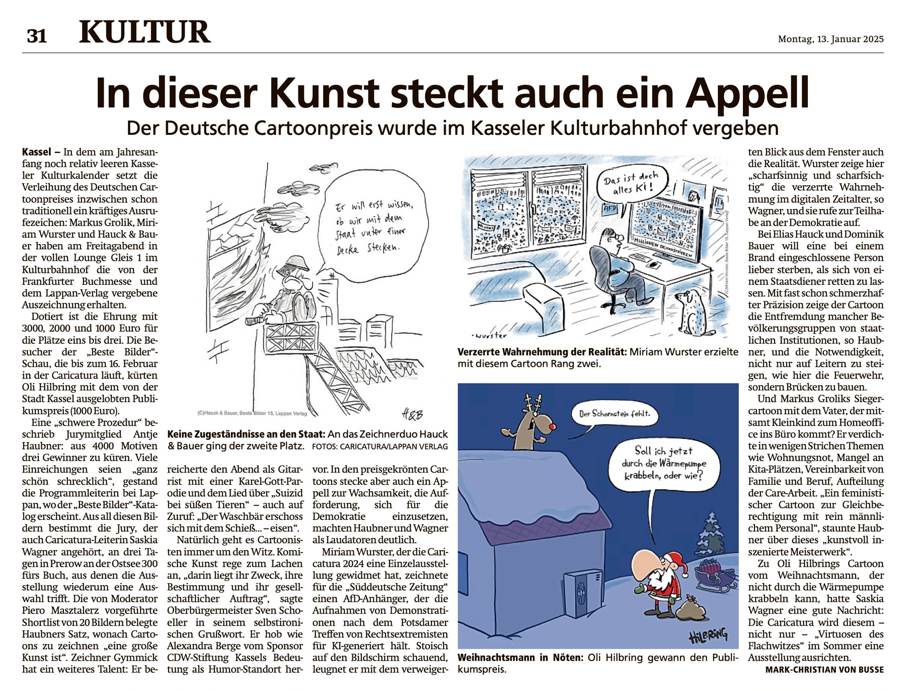 Leistungen: Umsetzung der Form nach einer Idee der Caricatura im Jahr 2022 und seitdem die inhaltliche Gestaltung des Publikumspreises.