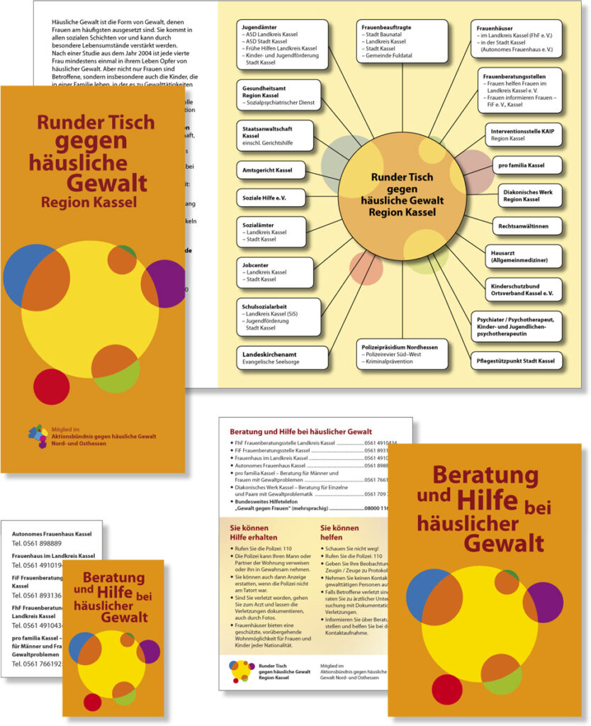 Die Broschüre „Gemeinsam gegen häusliche Gewalt“ skizziert die Interventions- und Präventionsarbeit im Landkreis und der Stadt Kassel. Im Jahr 2018 erschien die 3. überarbeitete Auflage.